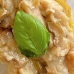 - Spoon some of the bean mixture onto each crostino mounding it slightly. Drizzle with extra virgin olive oil. Season with freshly ground black pepper. Place a few leaves of fresh basil on each crostino.